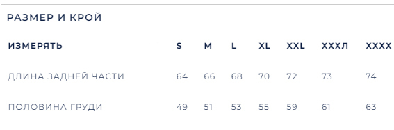 Таблица размеров (мужской)