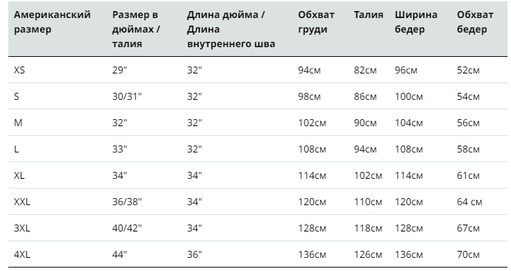Таблица размеров (мужской)