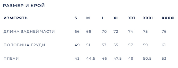 Таблица размеров (мужской)